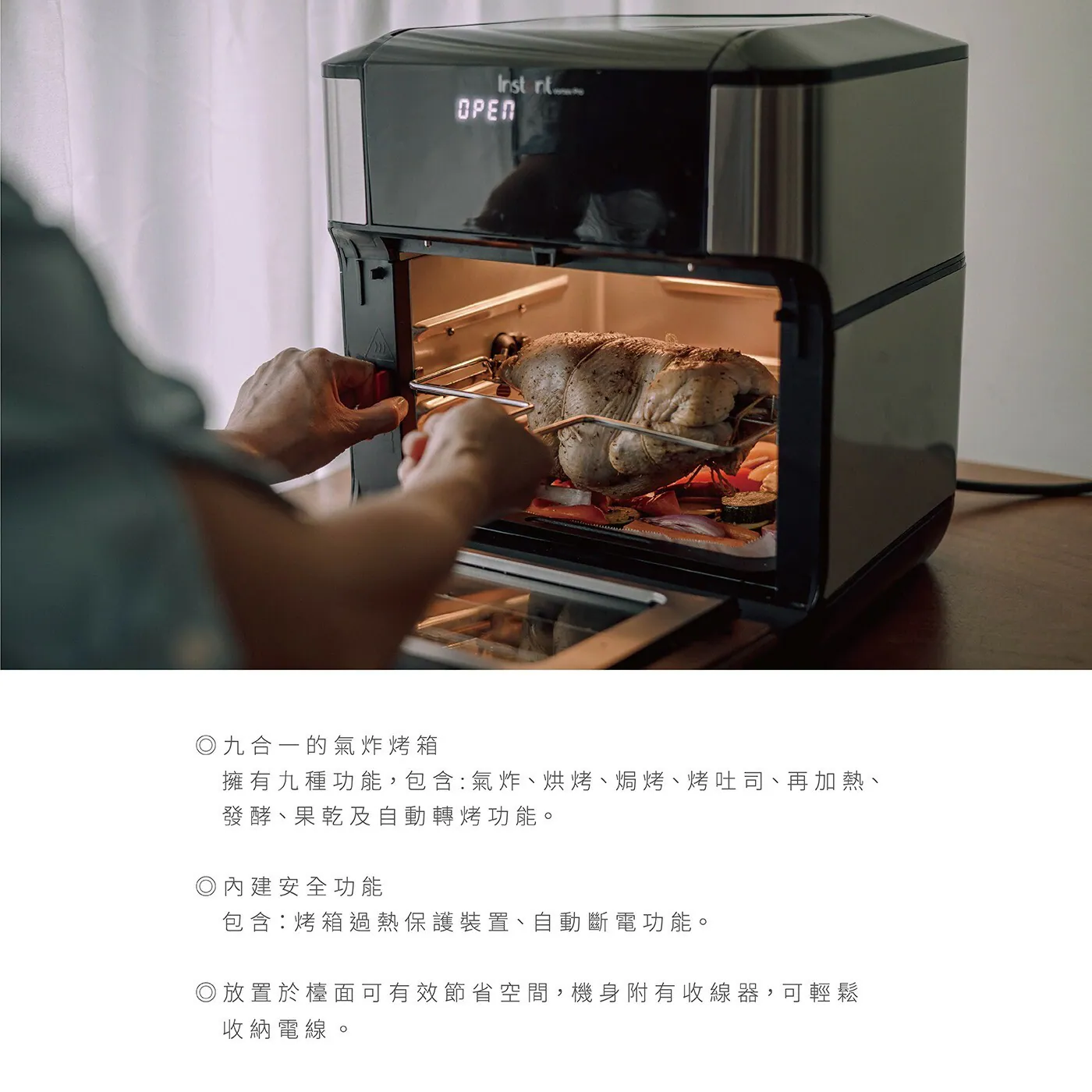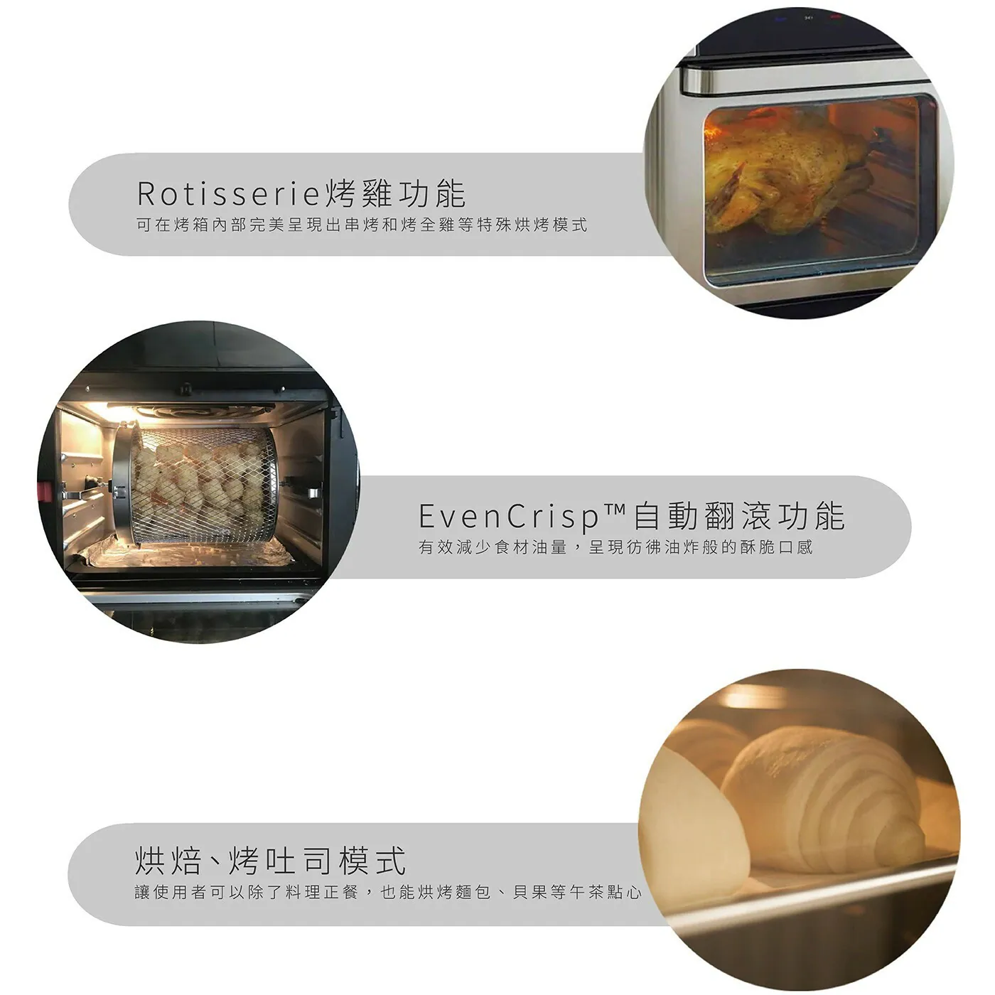 ■ 九種功能:氣炸、烘烤、焗烤、烘焙、烤土司、再加熱、發酵、果乾、自動轉烤